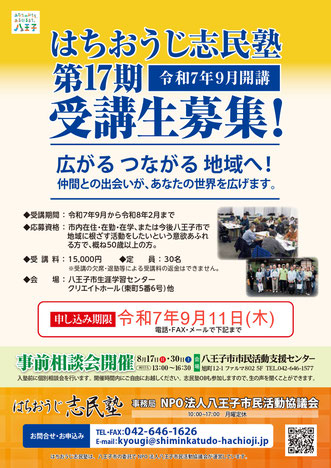 令和7年度第17期のはちおうじ志民塾の参加申し込みは終了しました。